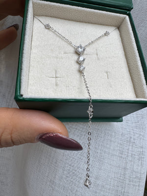 Raffinata e luminosa, questa collana in argento 925 presenta un design a Y elegante e minimale, pensato per valorizzare il décolleté con un tocco di brillantezza.