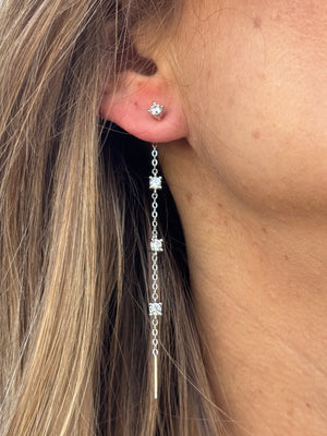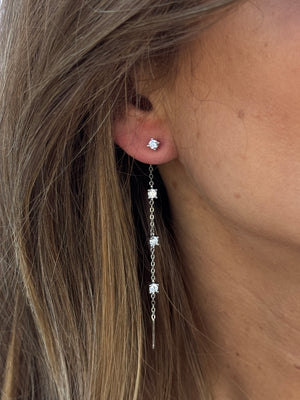 Raffinati orecchini in argento 925, impreziositi da zirconi bianchi incastonati lungo una catena sottile. Lo stile essenziale ma brillante li rende perfetti per chi ama la semplicità elegante e il movimento delicato della luce.