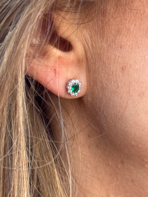 Orecchini in argento 925 rodiato con pietra centrale colorata taglio ovale, circondata da una luminosa corona di zirconi bianchi che ne esalta la brillantezza. Un design classico e senza tempo, ideale per aggiungere un tocco di eleganza ad ogni look, da quello quotidiano alle occasioni speciali.
