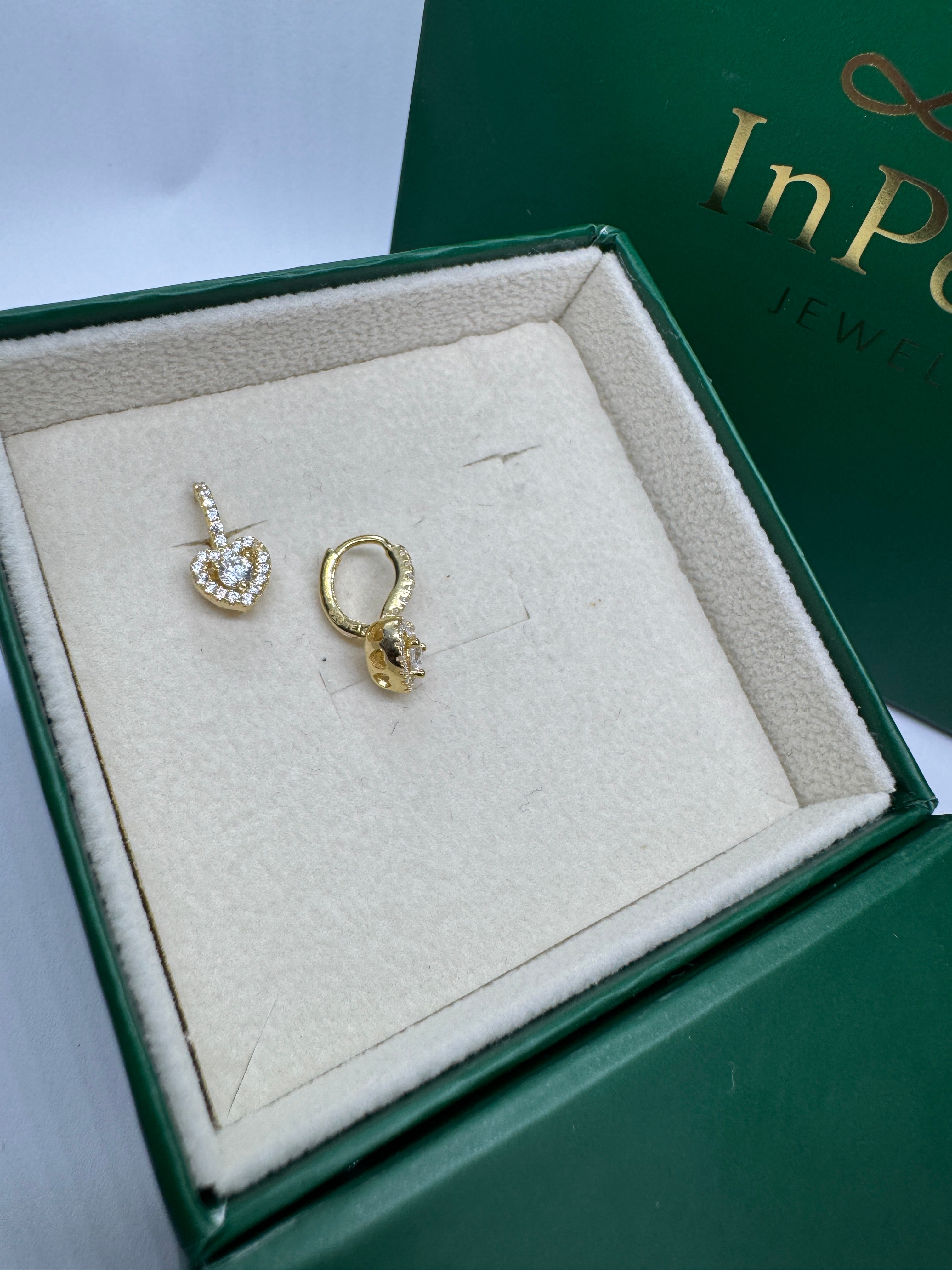 Romantici e luminosi, questi orecchini in argento 925 con galvanica dorata sono arricchiti da un delicato fascino a cuore interamente ricoperto di zirconi brillanti .