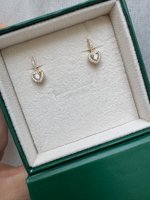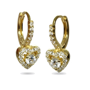 Romantici e luminosi, questi orecchini in argento 925 con galvanica dorata sono arricchiti da un delicato fascino a cuore interamente ricoperto di zirconi brillanti .