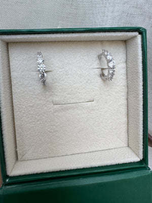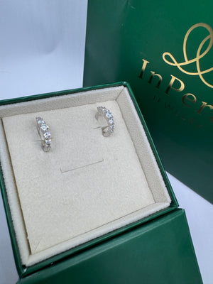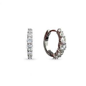 Raffinati orecchini a cerchio realizzati in argento 925, caratterizzati da una splendida sequenza di zirconi bianchi a taglio brillante. Le pietre, incastonate in modo crescente al centro, creano un effetto luminoso e armonioso che valorizza il viso con eleganza.